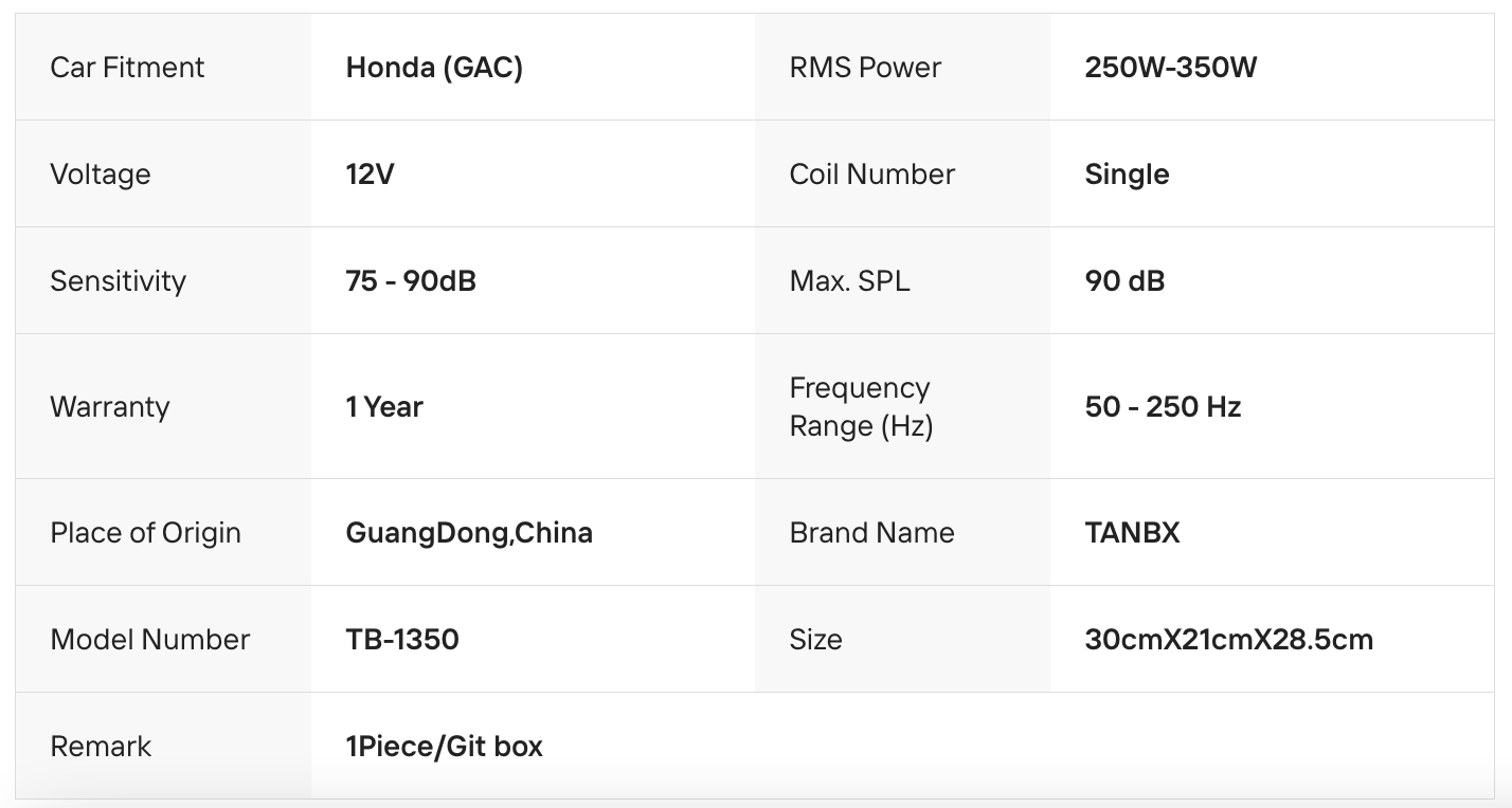 TANBX TB-1350 10-Inch Active Car Subwoofer with Box and Amplifier delivers deep and powerful bass with its built-in amplifier and 10-inch woofer, providing a complete all-in-one audio solution. Designed for easy installation, it requires no external amp while ensuring stable and efficient low-frequency output.