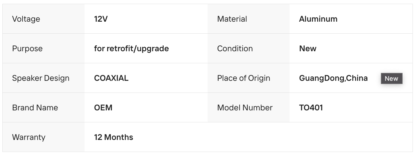 Built for Toyota vehicles, the TO401 4-inch coaxial speakers deliver up to 250W peak power with a 2-way design, offering clear highs and balanced mids. Compact and easy to install, they provide a solid upgrade for factory audio systems with improved clarity and performance.