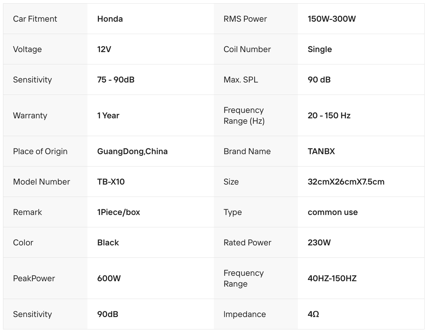 TANBX TB-X10 is a 10-inch under-seat active subwoofer designed for powerful bass in a compact form. With a built-in amplifier and slim profile, it delivers deep, punchy low frequencies while saving space. Easy to install, it’s a great upgrade for enhancing your car audio system.