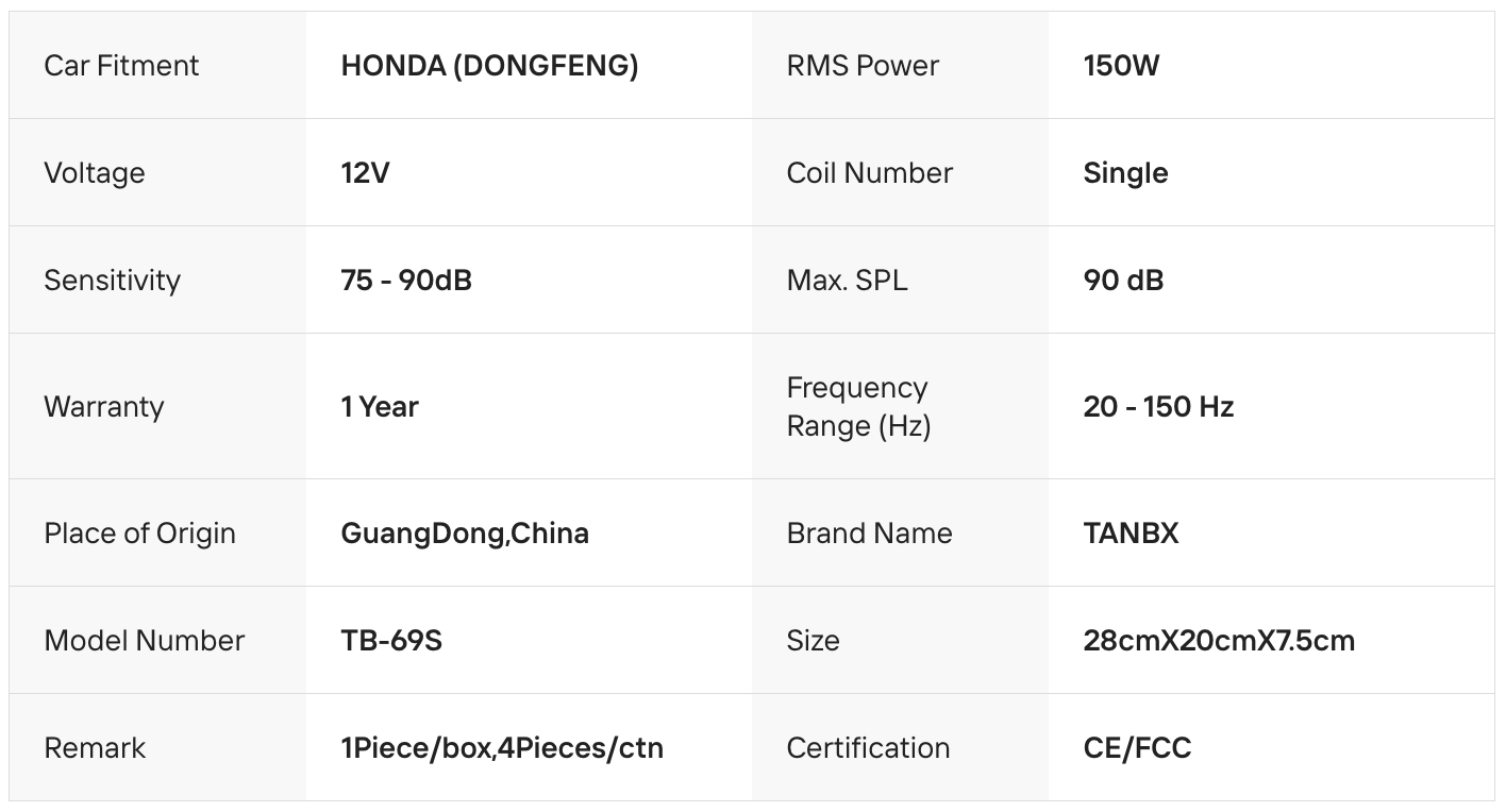 This 6×9 inch slim active subwoofer features a new design with a built-in amplifier for easy under-seat installation. It delivers strong, clean bass while saving space, making it a great upgrade for car audio systems that need better low-frequency performance without bulky enclosures.